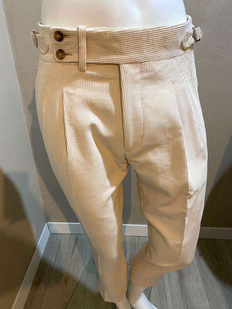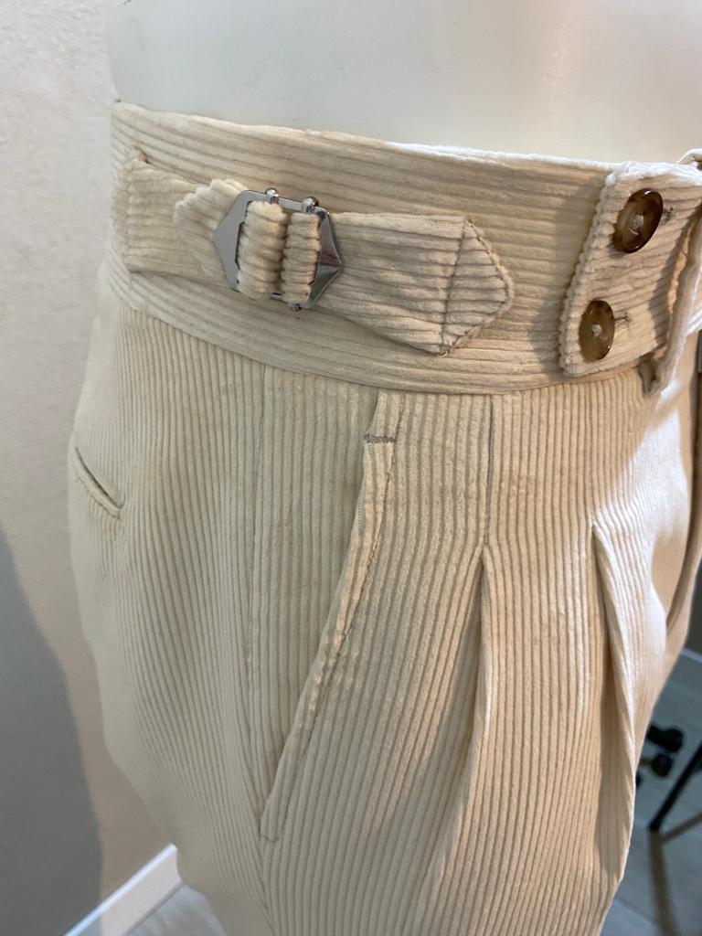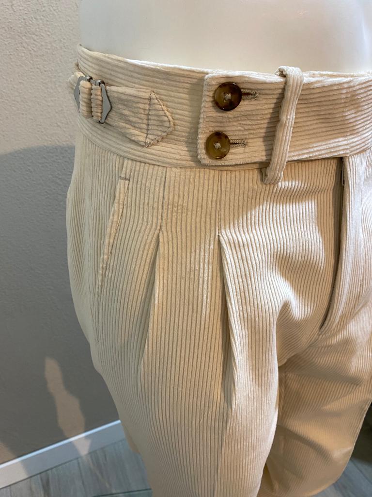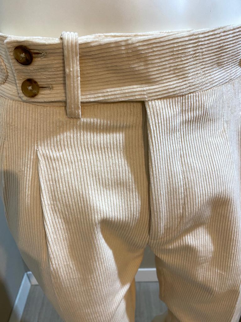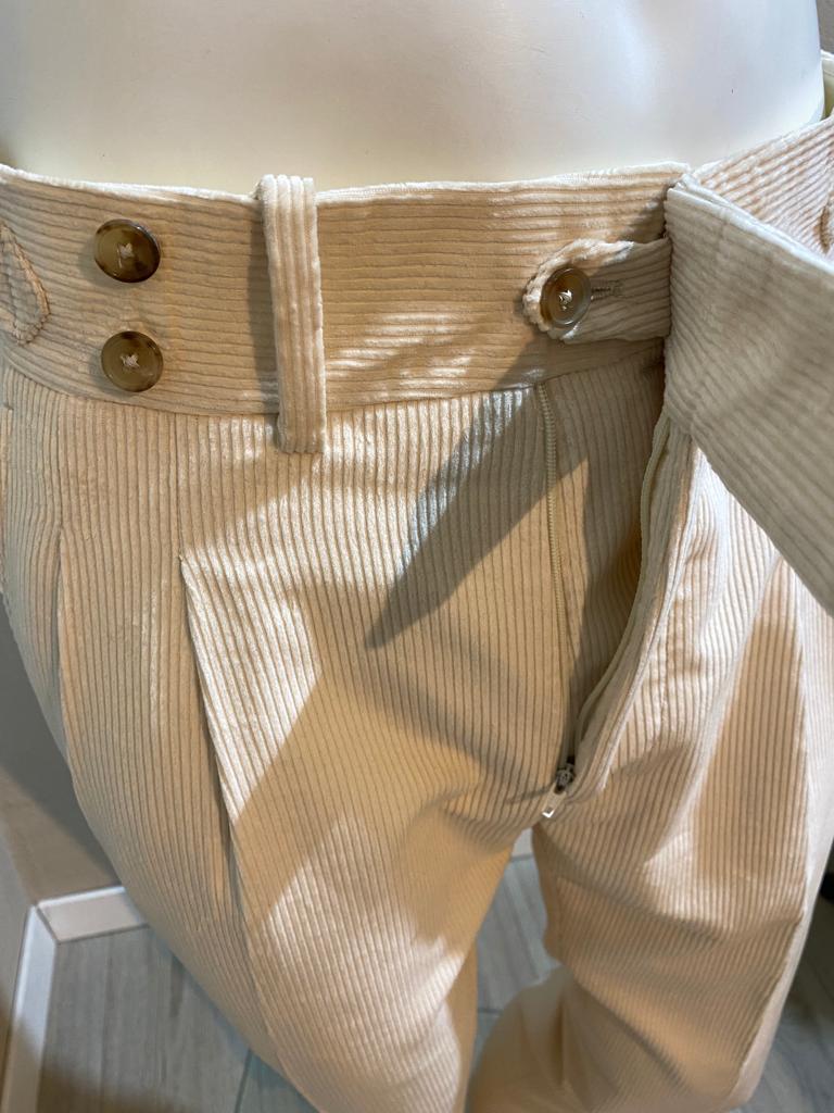 Pantalon crème en velours côtelé à double bouton - Duca Visconti di Modrone