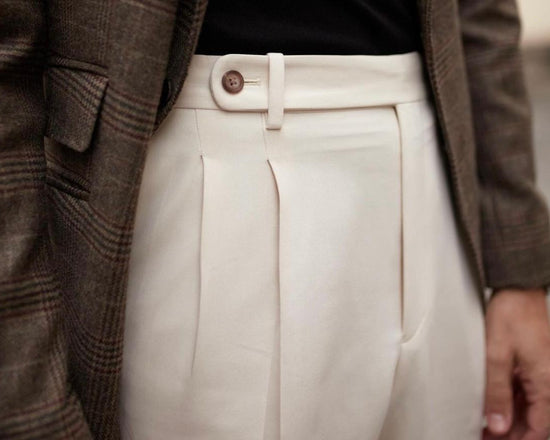 Dal tipo di piega alla chiusura della cintura, fino ai dettagli dei fianchi, ogni pantalone può essere personalizzato per rispecchiare al meglio lo stile del cliente.