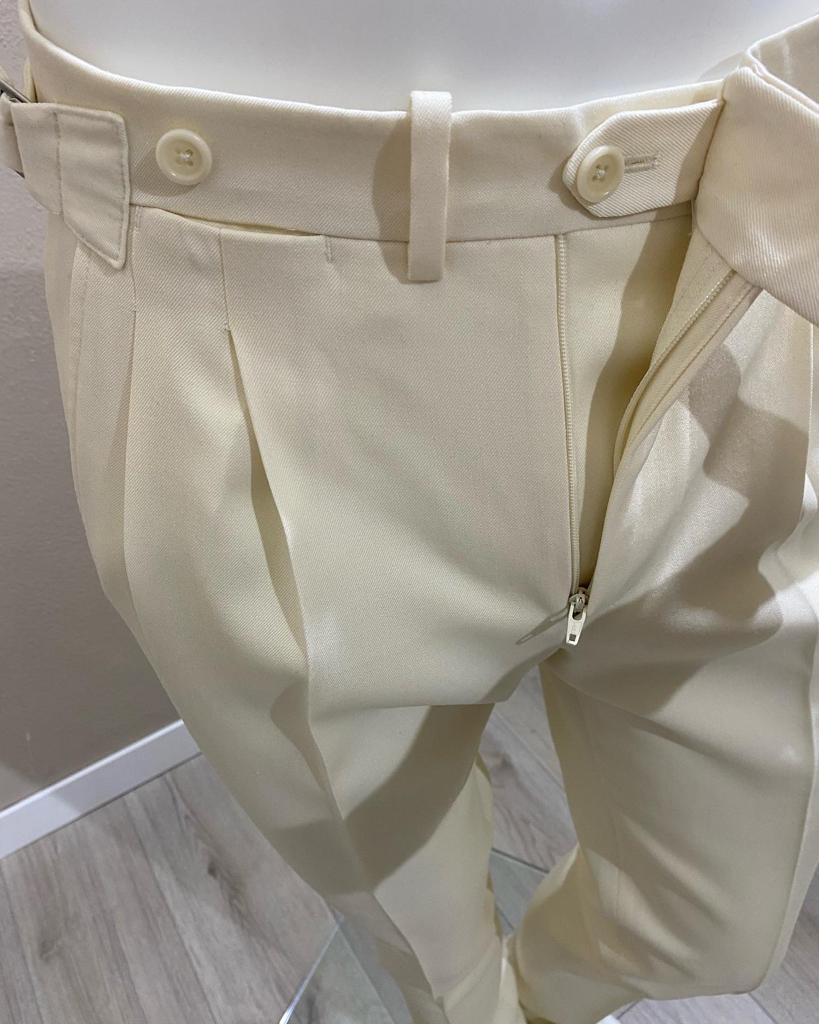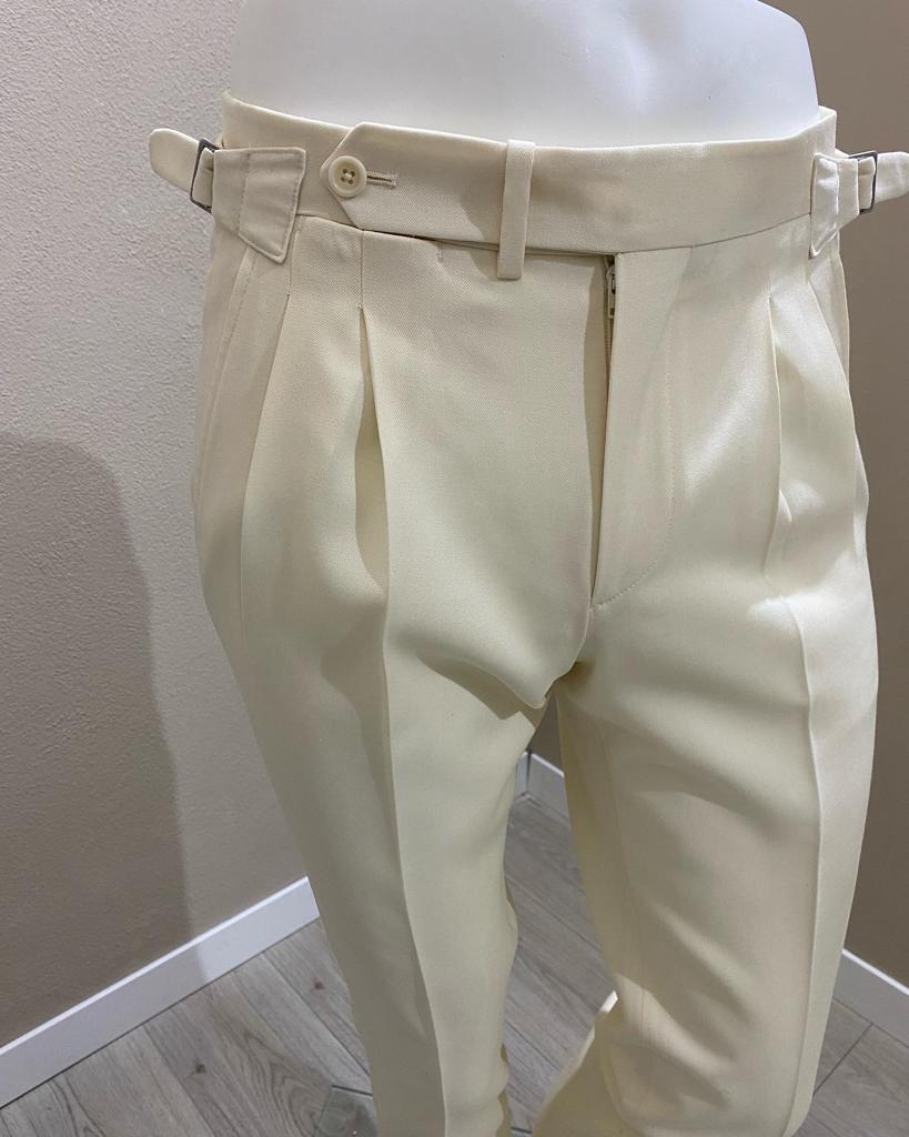 - Su Misura: Ogni dettaglio è personalizzabile: piega, tasche, chiusura, colore e tessuto. Ideale per chi cerca un capo esclusivo che calzi a pennello.