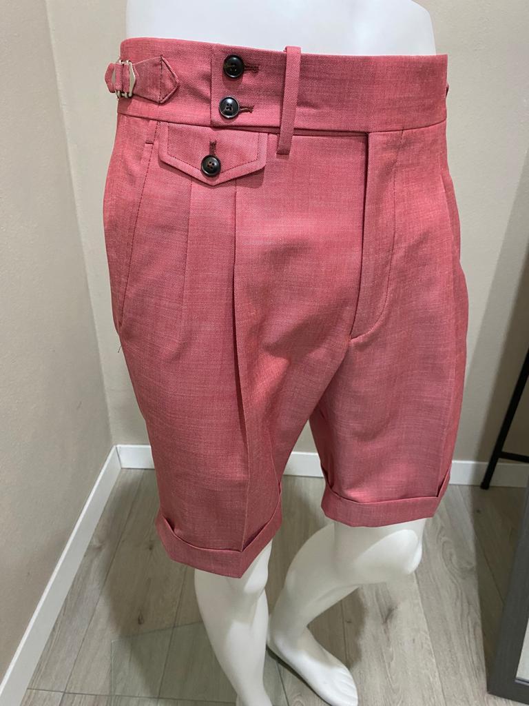 Red pleated shorts - Solbiati linen
